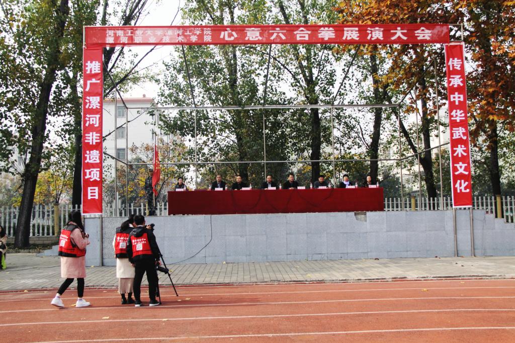 pg娱乐电子游戏官网入口、漯河职业技术学院心意六合拳展演大会在学校西操场召开