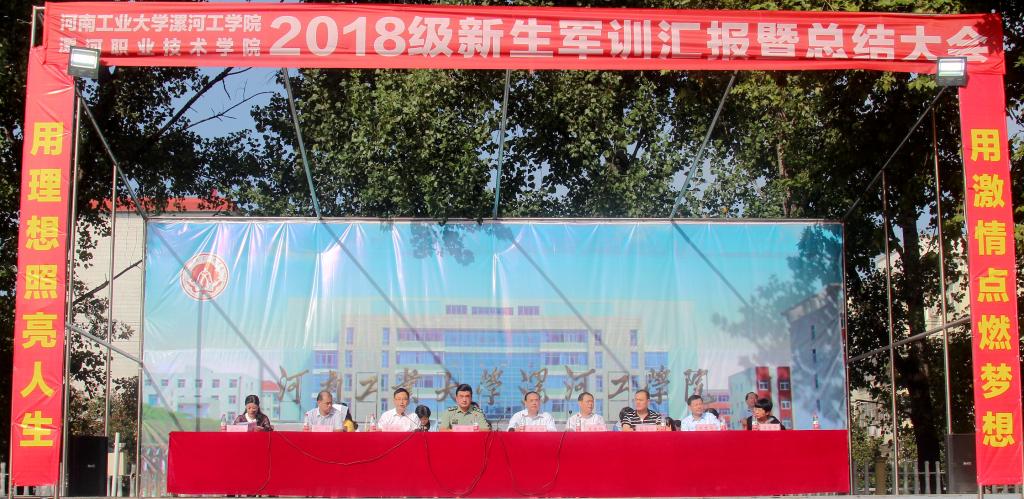 9月21日上午,我院2018级新生军训汇演暨表彰大会在西操场举行。学院党委书记顾文明,校长王春阳,纪委书记薛存心,副院长朱晓红、王变奇、代骅,工会主席吕爱华,漯河市国防教育中心主任张衡等出席,各系部处室负责人、参训教官和受训新生7000余人参加。大会由党委学工部(处)长程传蕊主持。