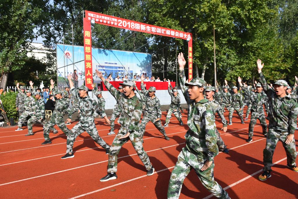 顾文明宣布pg娱乐电子游戏官网入口、漯河职业技术学院2018级新生军事训练汇报开始。由参训新生组成的22个标兵方队,分别表演了分列式、军人单人队列动作,军体拳、心意六合拳,展示了新生的风采。