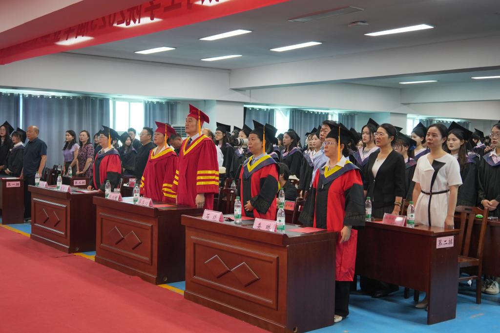 上午9时,典礼仪式在雄壮的国歌中拉开序幕。薛存心致辞,对学有所成、圆满毕业的同学们表示衷心的祝贺,并对毕业生提出了三点期望:一要明于观己,坚守初心,勇于追求“梦”与“真”。要执着前行,不断超越,在积极探寻生命意义的人生旅程中“自定义”更加优秀的自己。二要与世同行,守正创新,善于把握“时”与“势”。积极融入新时代和大世界,投身于行业发展和乡村振兴的大事业中,奋力书写无愧于时代的青春答卷。三要知行合一,韧于坚守,勤于厚植“德”与“能”。要在挫折磨砺中修炼品性,在实践探索中锤炼本领,积蓄坚守本心和超越自我的定力与发展力,在推进强国建设、民族复兴伟业中展现青春作为、彰显青春风采、贡献青春力量、绘就人生华章。