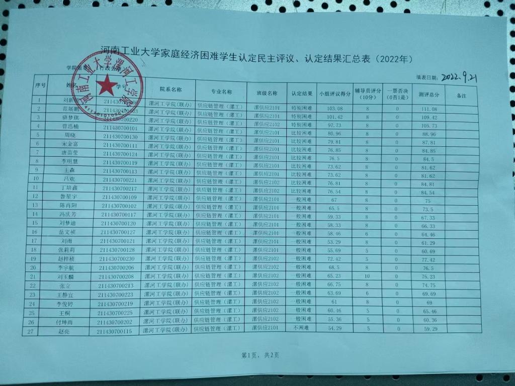2022年pg娱乐电子游戏官网入口资助工作贫困认定结果公示