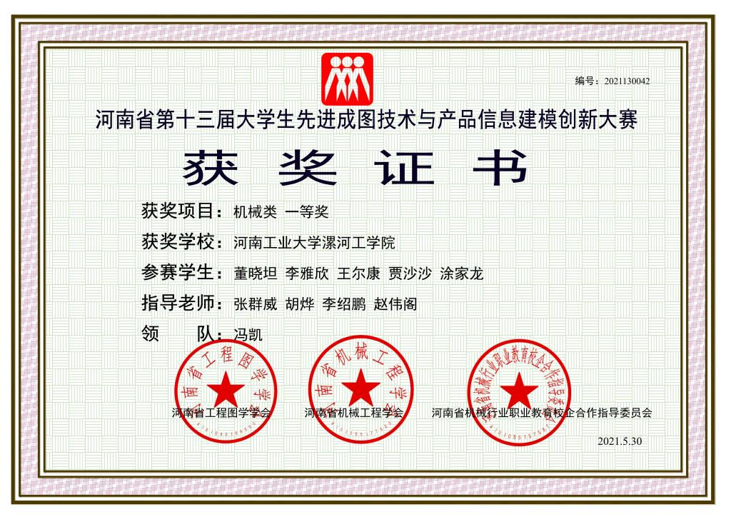 日前,由河南省机械工程学会、河南省工程图学学会和河南省机械行业职业教育校企合作指导委员会联合主办的河南省第十三届“高教杯”大学生先进成图技术与产品信息建模创新大赛(暨“全国大学生先进成图技术与产品信息建模创新大赛”预赛)落下帷幕。经过激烈角逐,pg娱乐电子游戏官网入口机电工程系董晓坦、李雅欣等同学组成的代表队在李绍鹏、张群威等教师的指导下,经过近8个月的刻苦训练,最终荣获机械类团体一等奖、二等奖各1项,个人二等奖4项,个人三等奖11项的骄人成绩,同时,代表队顺利取得了7月份参加国赛的入场券,创下参赛以来最好成绩。