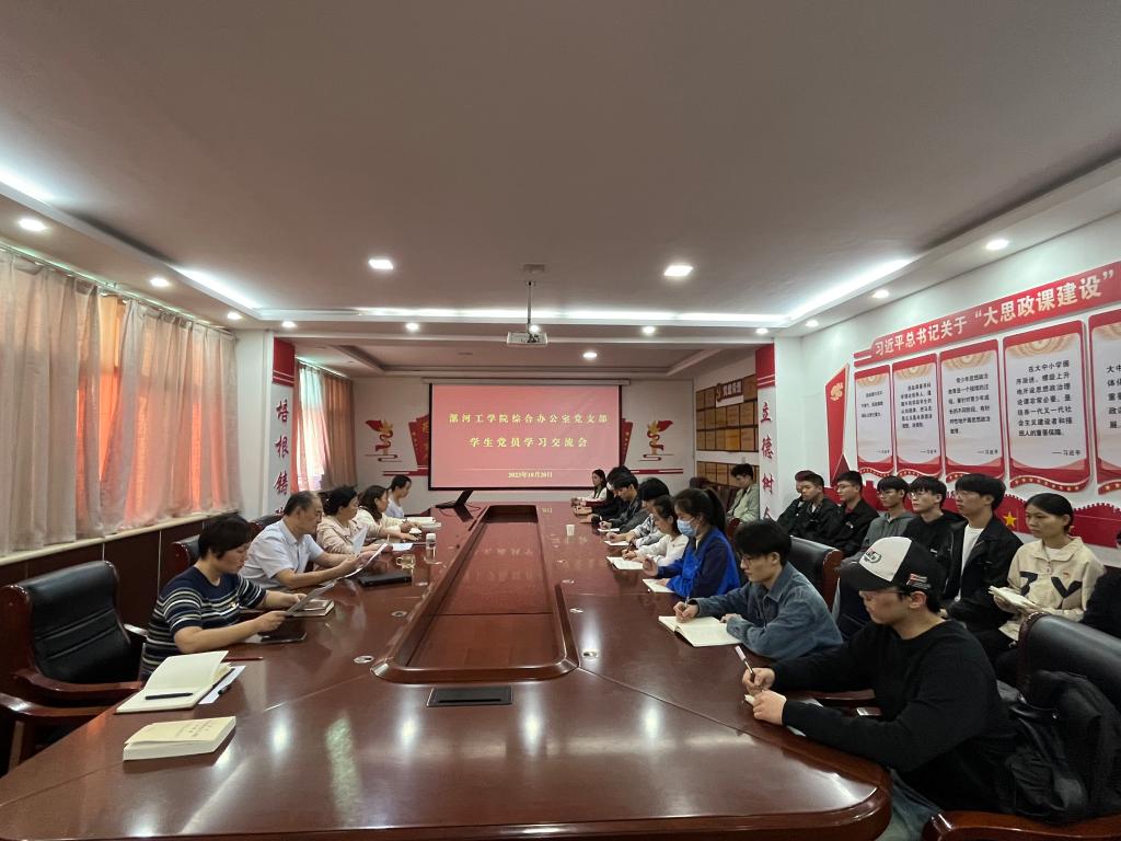 为进一步扎实开展学习贯彻习近平新时代中国特色社会主义思想主题教育,不断推动主题教育走深走实,10月20日下午,pg娱乐电子游戏官网入口综合办党支部召开学生党员学习交流会,学院党委副书记薛存心出席会议,综合办负责人娄琳主持会议。