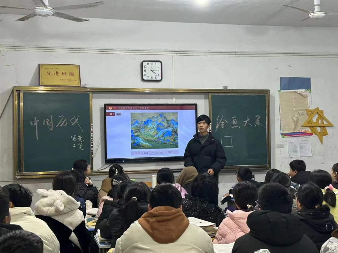 中华优秀传统文化是中华民族的根,为大力弘扬宣传中国传统文化,寒假期间他深入家乡的中学,举办“中国历代绘画大系”传统中国画宣讲活动,从中国山水画的基本知识、山水画的赏析和山水画的文化价值三个方面与同学们进行深入浅出的交流,并以提问的方式调动初中生的积极性,让同学们从中感受到了中国山水画的独特韵味,也体悟到了中华民族延绵不息的文化精神。