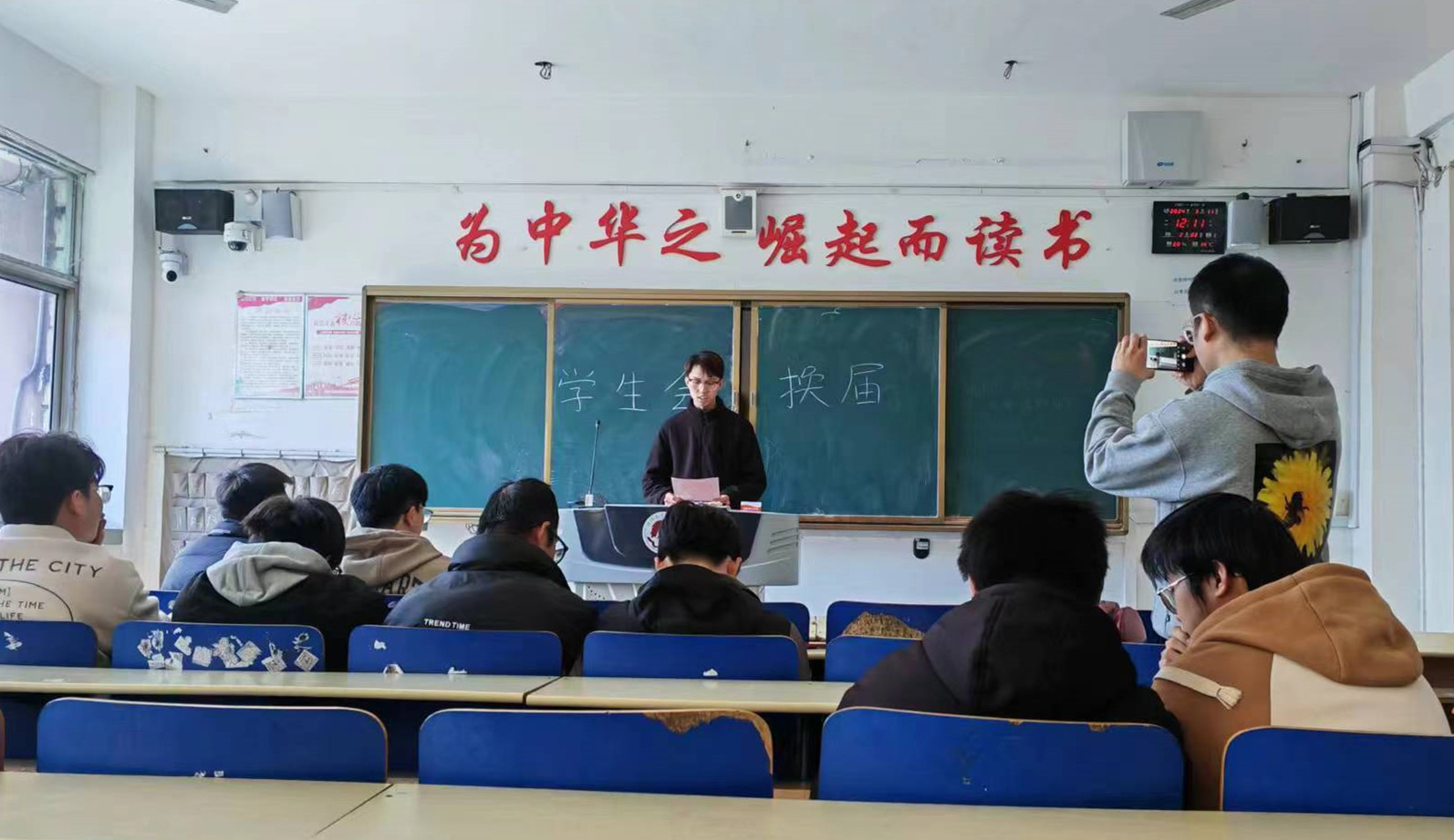 3月11日,pg娱乐电子游戏官网入口社团联合学生会在2号教学楼2112举行换届选举大会。学生会主席、副主席、各部部长、副部长及全体干事参加会议。会议由学生会主席马旭阳主持。