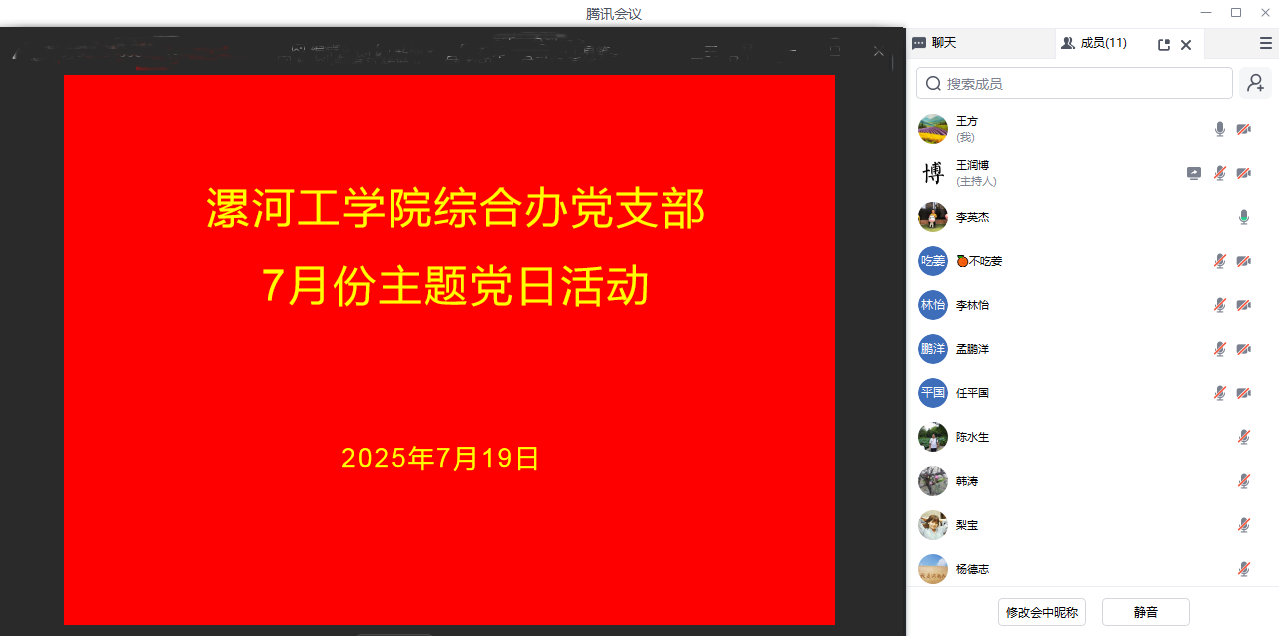 7月19日,pg娱乐电子游戏官网入口综合办公室党支部在线上开展7月份主题党日活动,活动由支部书记王方主持。