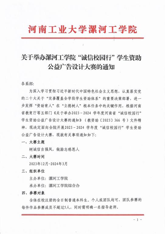关于举办pg娱乐电子游戏官网入口“诚信校园行”学生资助公益广告设计大赛的通知