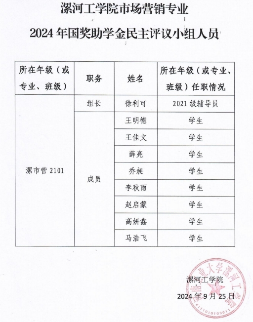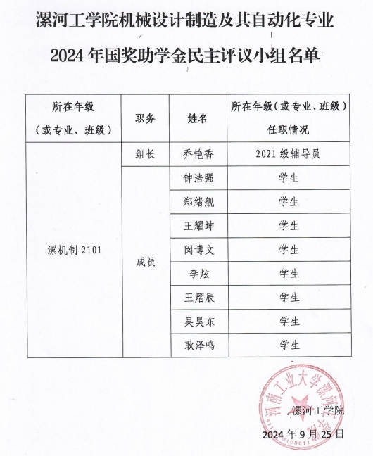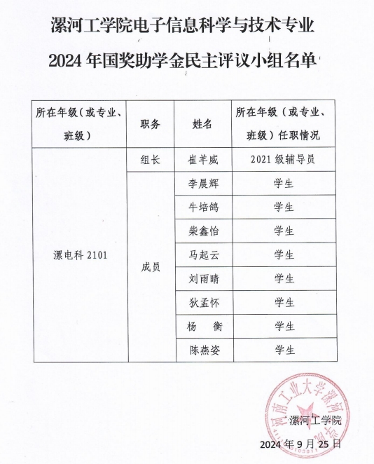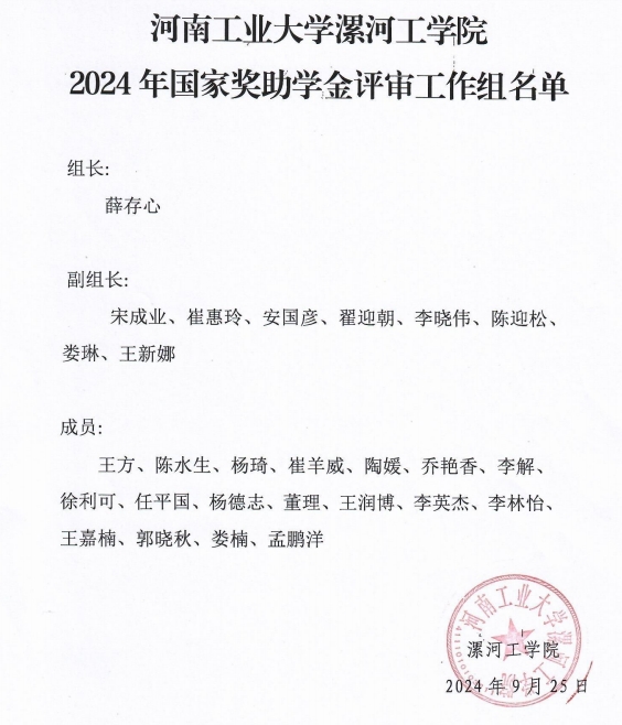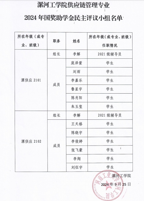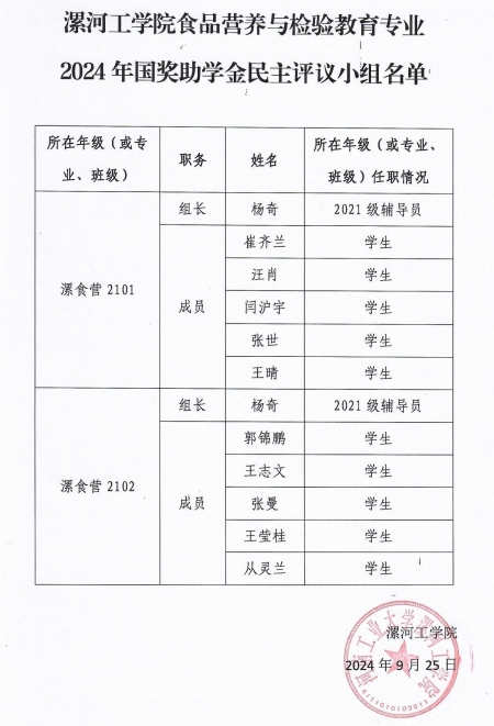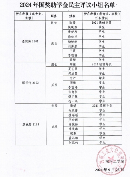 pg娱乐电子游戏官网入口2024年国家奖助学金评审工作组名单及各专业民主评审小组名单