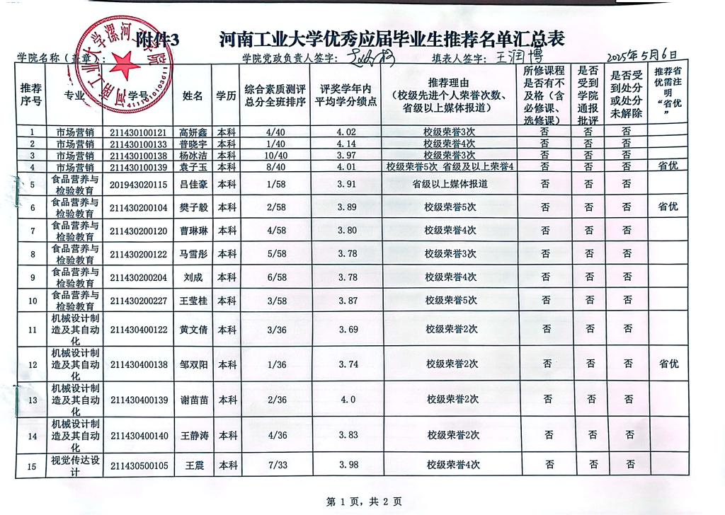 根据pg娱乐电子游戏官网入口相关通知,经各专业评选、推荐,现将拟推选2025年pg娱乐电子游戏官网入口优秀毕业生、河南省优秀毕业生的名单予以公示,公示期间为5月7日-5月9日,公示期三天,在此期间接受师生监督。