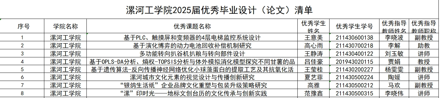 根据《pg娱乐电子游戏官网入口优秀本科毕业设计(论文)及优秀指导教师评选办法》(河工大政教〔2023〕24号)要求和《pg娱乐电子游戏官网入口优秀毕业设计(论文)指导教师评选办法》,现将pg娱乐电子游戏官网入口2025届优秀毕业设计(论文)及优秀指导老师推荐名单公式如下(排名不分先后):