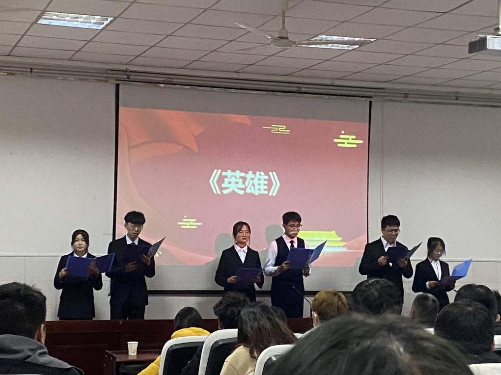 论坛最后,六位学生代表用深情激昂、富有感染力的朗诵表达出对英雄的敬畏情怀。“我们的历史是一部英雄的历史,我们的国家是生长英雄是的国家!”他们用雄赳赳气昂昂的气势,激起了在场每位同学的爱国之情。